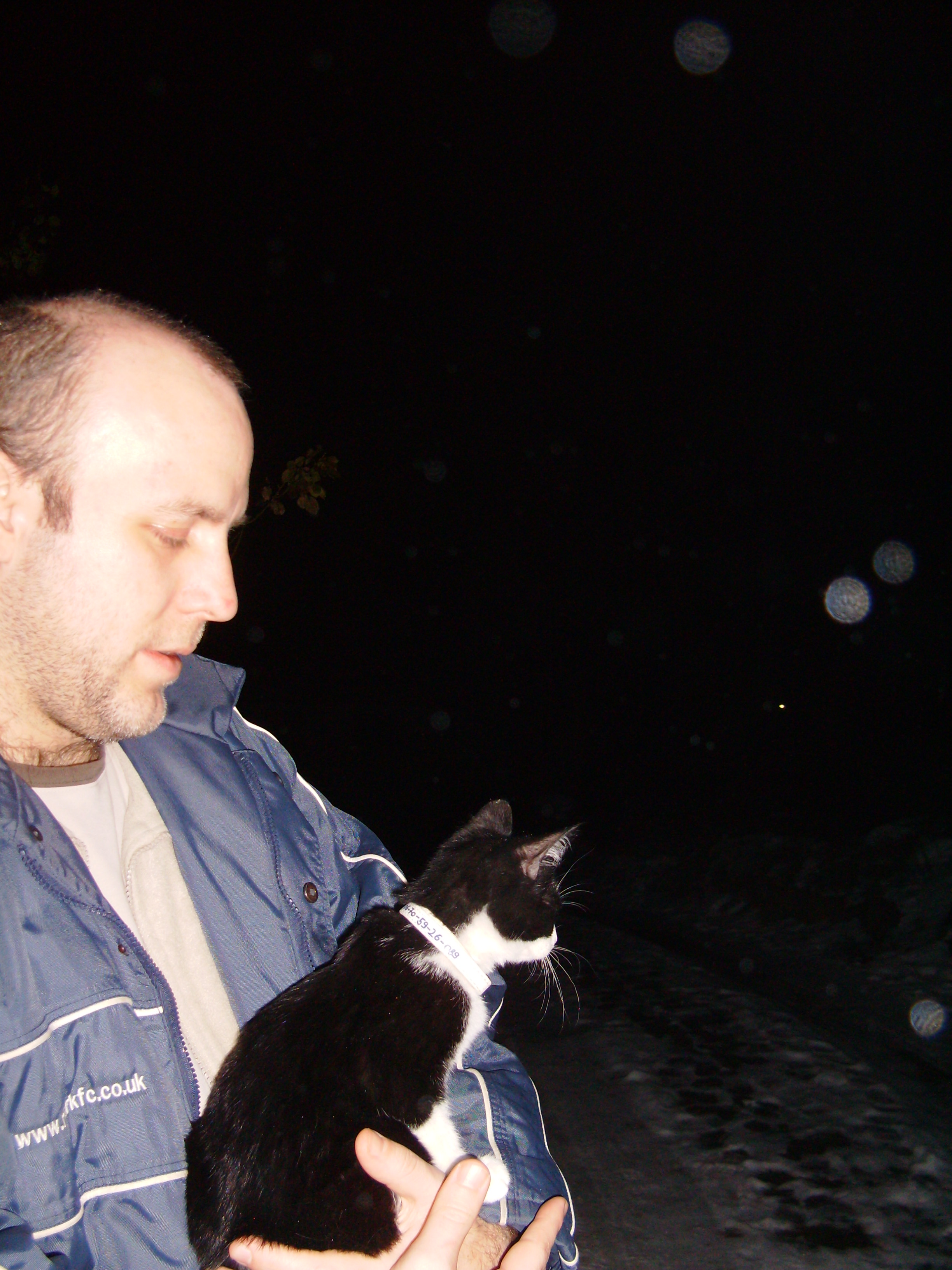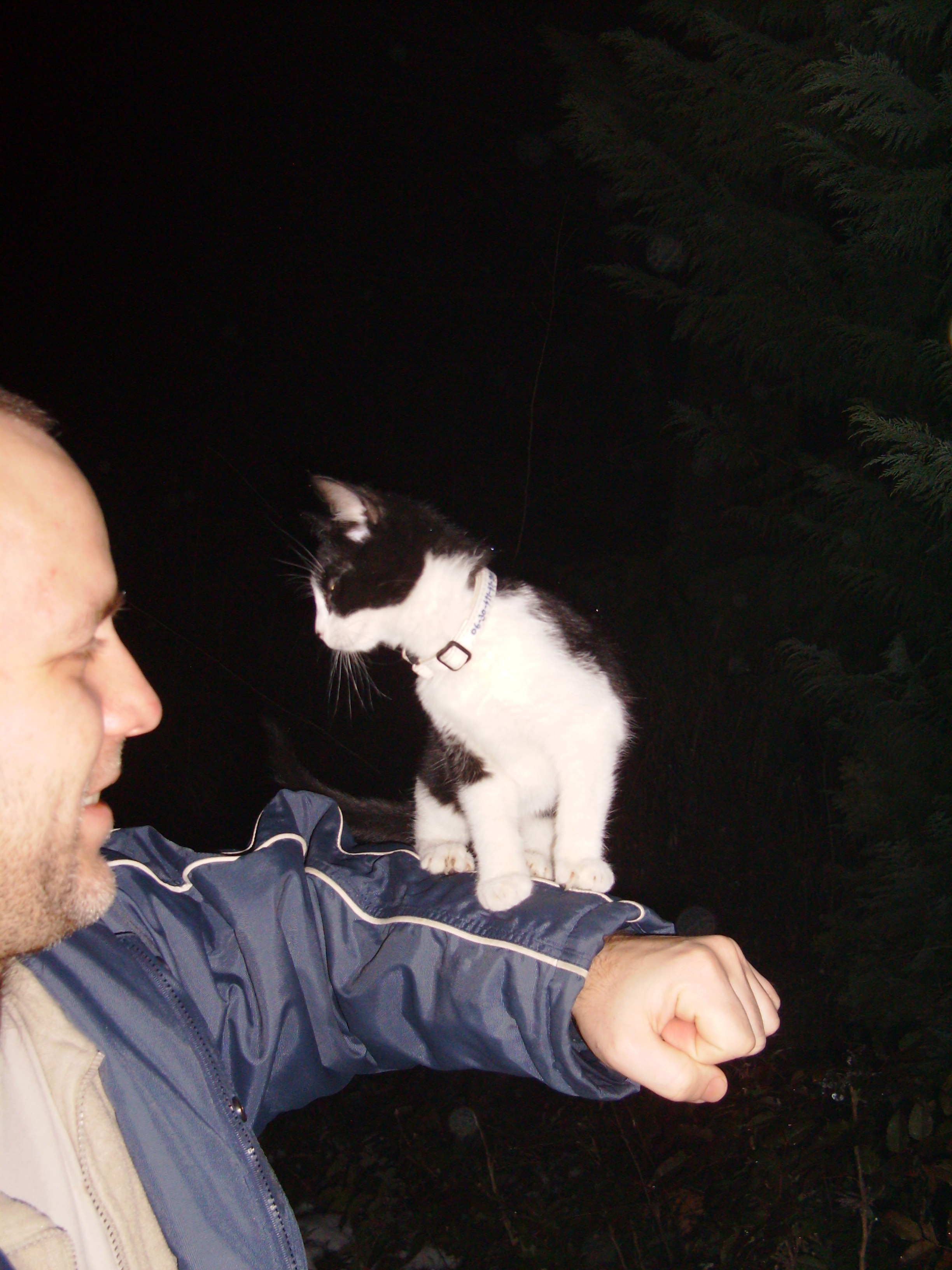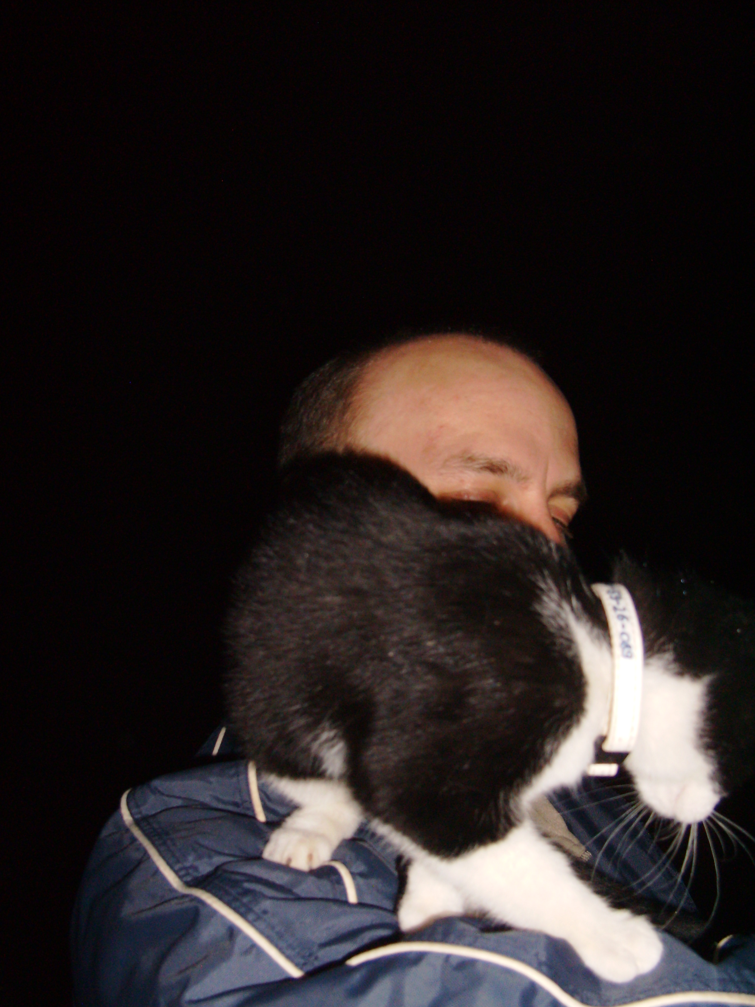 Szóval az új kismacskának (ő volt a legutolsó ilyen) beszereztünk egy nyakörvet (fehér) körülbelül 350 forintért. Erre alkoholos filccel ráírtunk két darab telefonszámot, így ha valaki belefut, tudni fogja, hogy tartozik valakihez és azt is hogy kihez.