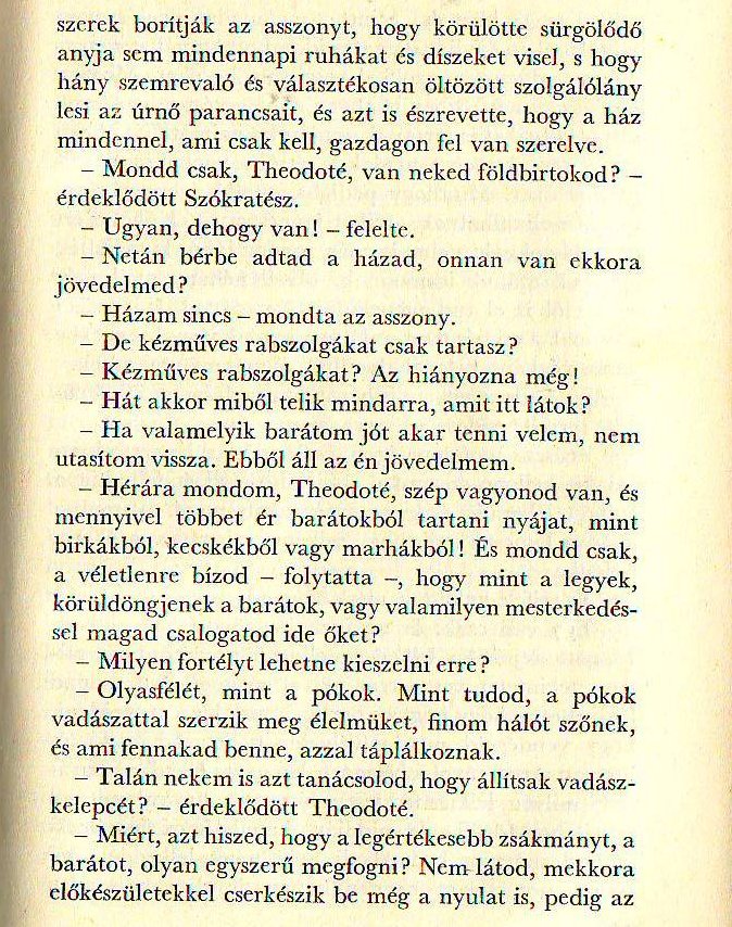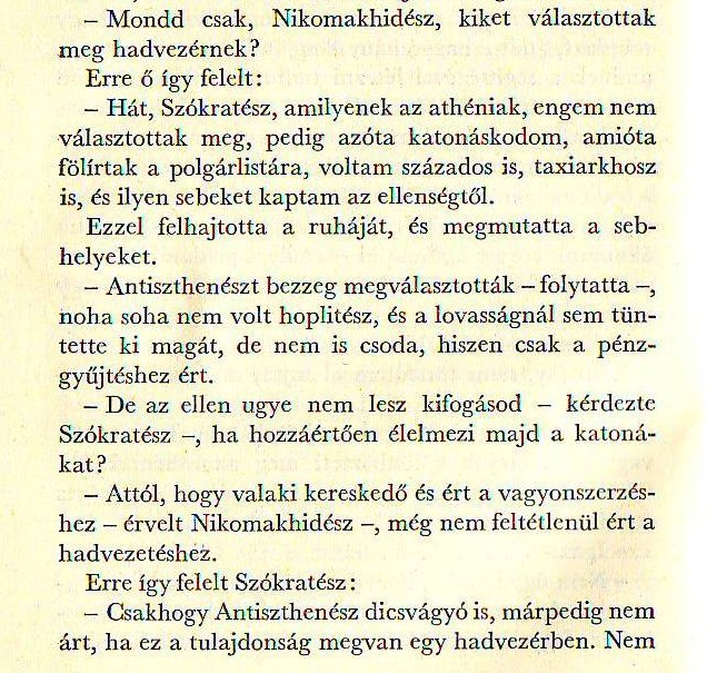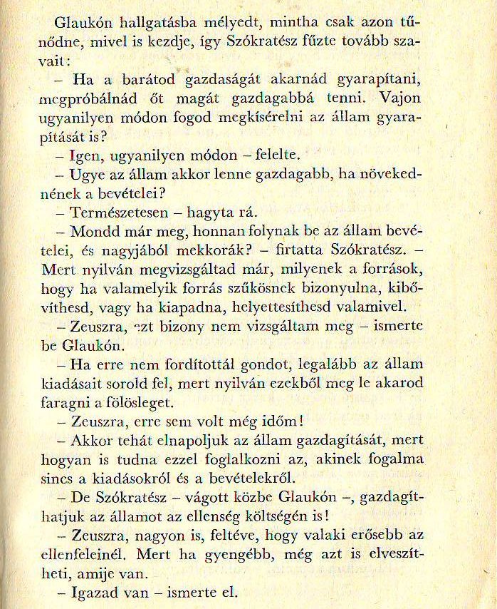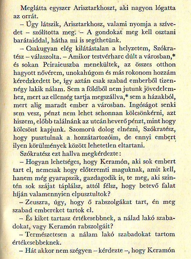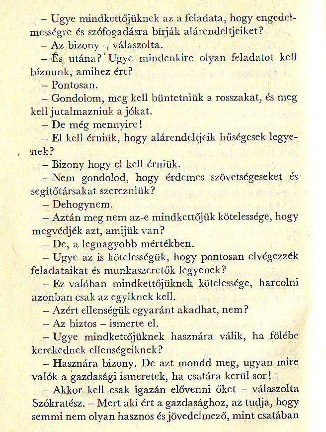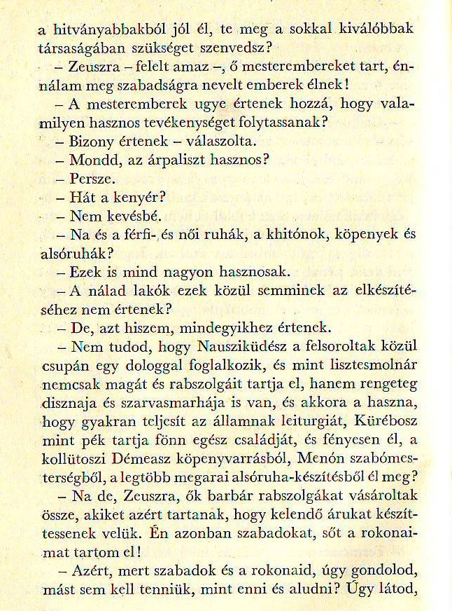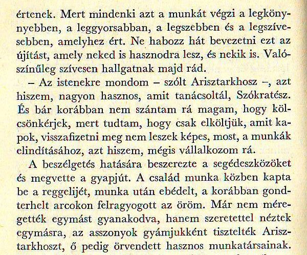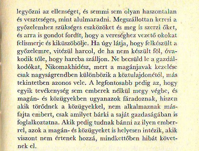 “Ne becsüld le a gazdálkodókat, Nikomakhidész, mert a magánjavak kezelése csak nagyságrendben különbözik a köztulajdonétól, más tekintetben azonos vele.”