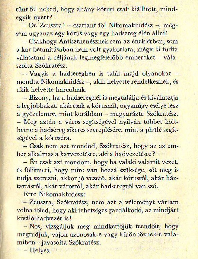 “Én csak azt mondom, hogy ha valaki valamit vezet, és fölismeri, hogy mire van szüksége, sőt meg is tudja szerezni, akkor jó vezető, akár kórusról, akár háztartásról, akár városról, akár hadseregről van szó.”