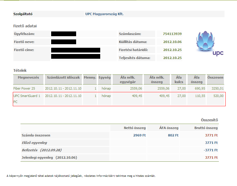 Ez abból adódik, hogy a UPC az első három hónapban ingyen szolgáltat egy SmartGuard nevű vírusirtó programot, amit 3 hónap letelte után minden szó nélkül fizetős szolgáltatásra változtat.